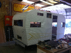 July 15th... four and a half weeks from the day we pulled it into the shop it is on its way to California. Notice we modified the rear bumper to accommodate a bicycle rack. Sorry about the terrible photo but the interior was finished off with custom led lighting, brushed stainless steel counter and table top, leather seating and client supplied custom window shades.