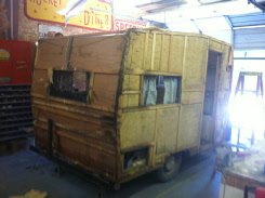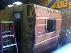 The owners of this little Shasta Compact noticed it had developed a couple of leaks and wisely brought it to us for repairs before the water ruined the interior paneling. With very little extra expense we decided it was also time for a Shasta Makeover!
