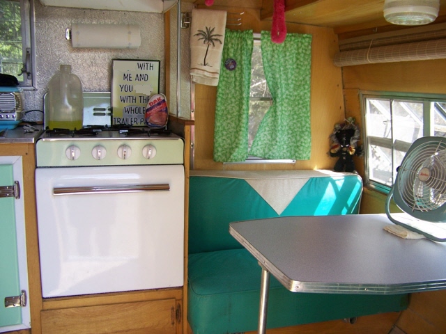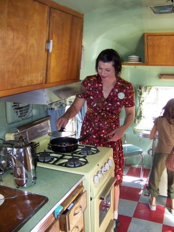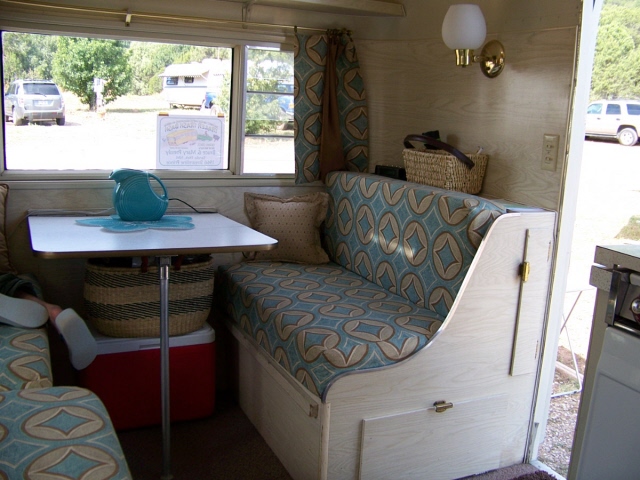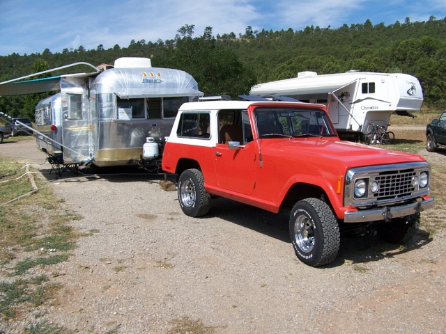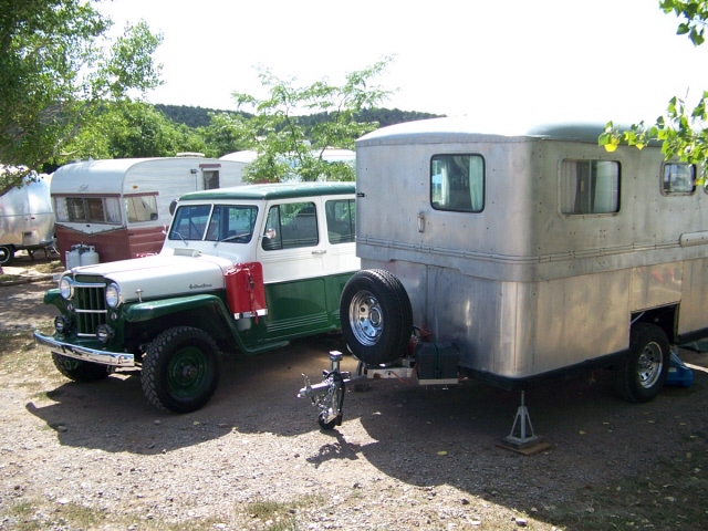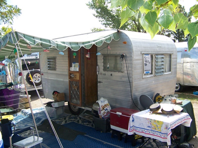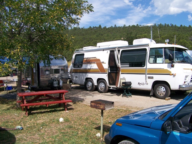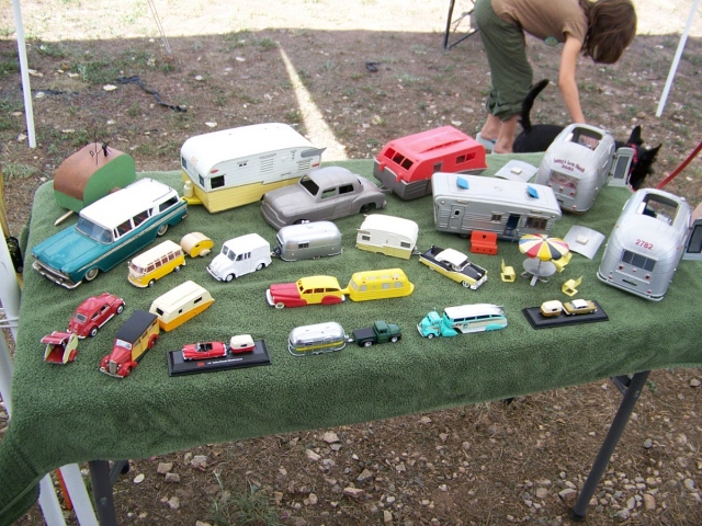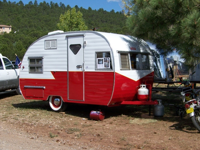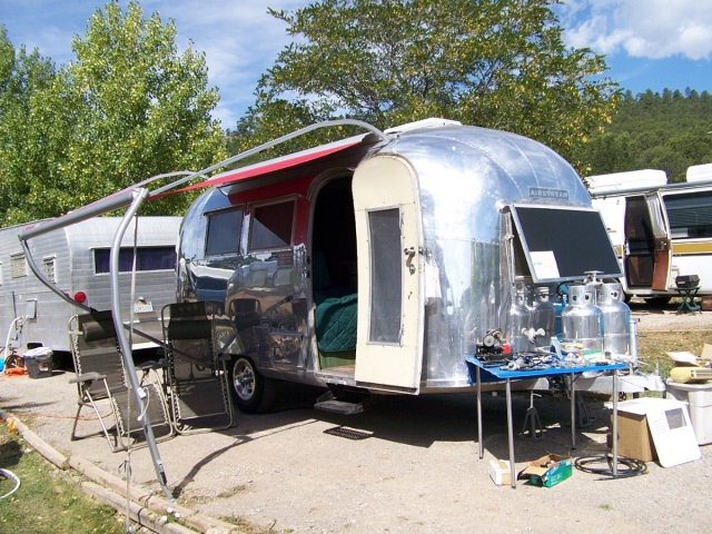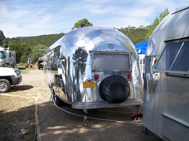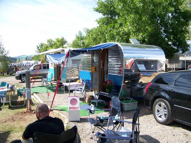 The fourth annual Trailer Trash Bash was another great event, with close to 50 vintage campers enjoying the New Mexico mountains and some great weather. We had many more trailers than we had spaces, but everyone cooperated as we doubled up most spaces and parked others wherever we could squeeze them in. Overall, I think it provided us with a very fun atmosphere. We started out Friday night with our "Drive In Movie", this year we showed a segment of "Cars on Route 66", a document featuring the Southwest Vintage Camper Association (available from Netflix). We followed that with our feature film, "Wild Hogs", which was filmed in the area and was very much enjoyed by everybody. Saturday was the usual open house, where everybody got a chance to show off their campers and collections, as well as check out all the others. Many folks brought along some swap meet items, so there was quite a bit of buying, selling & trading of cool stuff. The highlight of the weekend as usual was the party Saturday night. Not only did we have enough good food to feed twice as many people, the Queen contest was great as usual. Several lovely ladies tried out, but the eventual winner was Shelia Howard, AKA "Paris Shasta". Thanks to all the ladies, they all looked great! Sunday morning was the pancake breakfast and the goodbyes. A special THANKS to Deborah, Bradley and the rest of the crew at the Turquoise Trail Campground for supporting us and letting us take over the place for the weekend, as well as thanks to all that put in much time and effort in putting on this event. No way can I write details about everything that went on, but pictures say more than words so enjoy...here are more than 160 pictures! CLICKING on the picture will bring up a larger image, use your browser "back" button to return to the photo pages. Don't go away! Click HERE for more pictures of the TTB4!