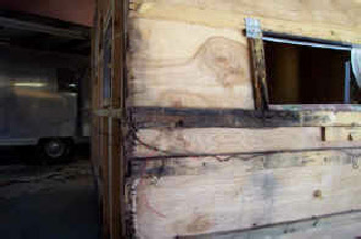 Sure enough, once we pulled the skin it did have considerable amount of water rot to the structural framing... the pile to the left was parts that literally fell off as we took it apart. No problem for Retro, we rebuilt all the wood structure and only had to replace a couple of interior panels, and of course we added new insulation before new skin matching the original pattern.