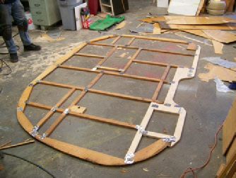 Sometimes I’m amazed at the shoddy craftsmanship from the factory. That cross member is a good inch and a half short of reaching the wall. We rebuilt the entire body the way it should have been built in 1956. Notice we used a lot of the old framing. We like to if it’s not compromised in any way. Old growth wood is much more dense than anything we can buy today, even though we use quality cabinet grade lumber.