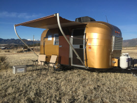 Exterior is in remarkable condition for a 50+ year old trailer. It has been professionally polished and the gold anodized trim is in excellent shape. It does have the cool third taillight that Streamlines of this era came with. It does not have an awning... being a park model we parked it next to a freestanding porch, not attached so no extra holes in body. Clear Colorado title. Delivery possible.