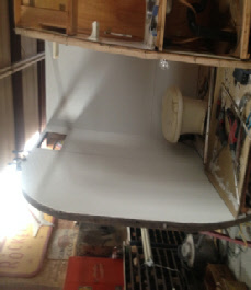 so we used FRP paneling, a plastic sheet commonly used in commercial restrooms and