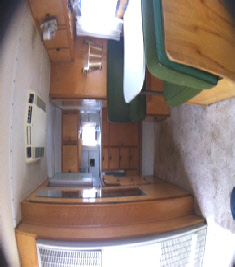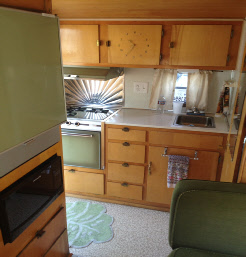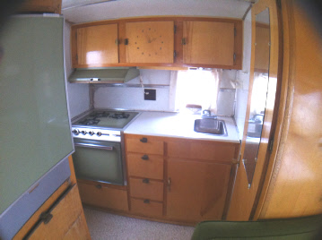 As 50's canned hams become harder to find and therefore more expensive, you may want to consider the advantages of the later 60's campers. I found this 1968 Frolic for sale on Craig's List for a very reasonable price, and could see the potential to build it into a very cool vintage camper. A bit larger at 18' it had the unique double entrance doors, a nice size rear kitchen and a full bathroom with shower. It did have real birch paneling and cabinetry (only way I would buy one, I hate the cheap photo laminate paneling) except it did have the 60's style vinyl ceiling. Good news, most everything on it worked, including the AC unit on the roof.