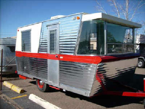 The Harry & David Fruit Company in Medford, OR attempted to enter the travel trailer business in 1960. They only lasted a couple of years so only a dozen or so of these are known to still exist. Our trailer collector friends in El Paso brought us this one with some really cool ideas of what they wanted, a high tech 60’s sci fi feel to the interior. It was pretty complete, but quite honestly the interiors were pretty ugly compared to the modern appearance of the outside, and the interior layouts just were not that good.
