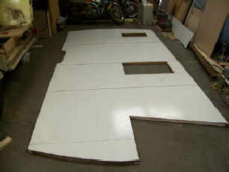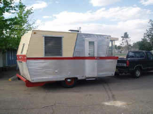 The exterior was restored pretty much the way it came from the factory. We even used the grained aluminum along the bottom and on the door just like it came new. Some of the challenges we faced was restoring the cap over the front windows, early Holiday Houses were steel (later fiberglass) and was rusted out pretty bad, and forming the new curved Lexan windows was tricky.