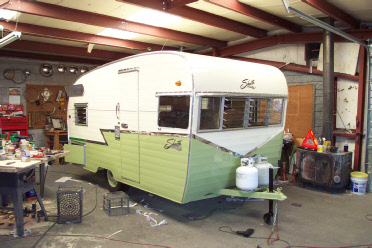 This Shasta was missing its wings so we fabricated new ones, Shasta trailers just don’t look right without them. Above right it waits for it’s owner to pick it up and leave on an extended cross country journey.