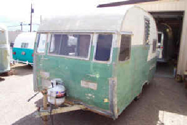 How’s this for a wreck ready for a trip to the dump? It’s in bad shape but it has what we look for... The windows were all there, the stove, icebox and bench seat frames. Despite all the water damage to the body, the cabinets were in pretty good shape. The owner even threw in the cheap big box store paneling and 2X4s he bought to “fix it up”. Fortunately he gave up before he started gutting it.