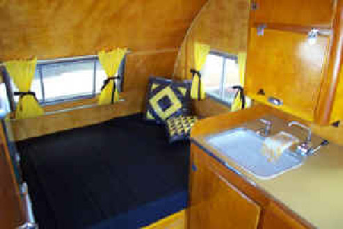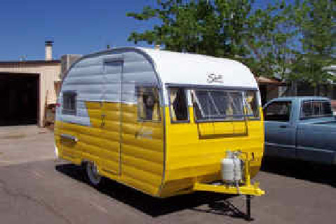 Below, sporting its new awning we took it to the big Newport Dunes Rally in California to display and advertise it for sale (it sold!). It caught the eye of a freelance newspaper reporter that was writing an article on the vintage camper movement... He featured it and that article was published in papers nationwide.