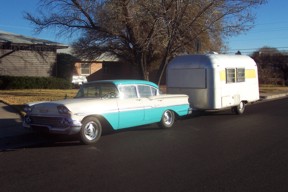 Tow vehicle is a 1958 Chevrolet Biscayne.