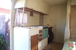 Interior needs some work, fridge is missing as is the dinette in the front of the trailer. Everything has been painted a white latex. Watch for progress on the interior of this one.