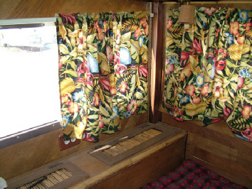 I really enjoy at times getting the opportunity to be a bit creative when restoring a camper, and this old Winnie was such a case. I purchased this 1973 Winnebago Brave from a previous owner that had let their seven year old grand daughter decorate the interior herself. Everything was covered either in latex paint or cheap contact paper... even the hardware and counter tops. With no economical way of putting it back to original it became a perfect palette to play with, and I wanted to do it on a budget. I decided it would be fun to do one up in a Tiki theme, much like the popular tiki bars of the 60’s.