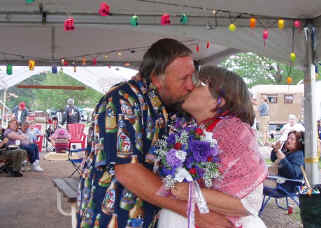 Something new this year was the wedding on Friday night. Actually it was a renewal of vows between Kenny & Susie as they were celebrating their 40th wedding anniversary. With the help of several of the ladies in the group, and the ceremony preformed by the Mayor of Trailer Trash town it was a touching
