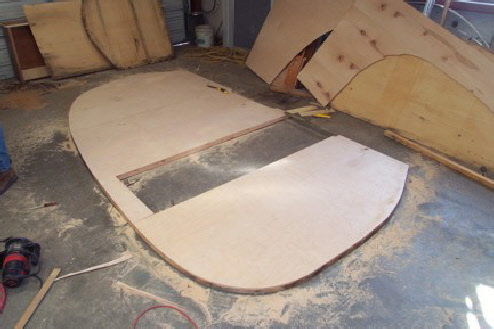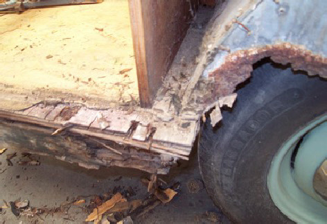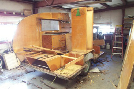 This little trailer was purchased on Ebay just by photos Looked pretty good, but close inspection showed quite a bit of water damage. Once we got the skin off it turned out to be severe water damage, in fact the bolts holding the body to the frame were completely rusted away! Scary that it made a trip from MI without falling apart. We ended up scrapping the entire body, building a new one using the original parts as patterns